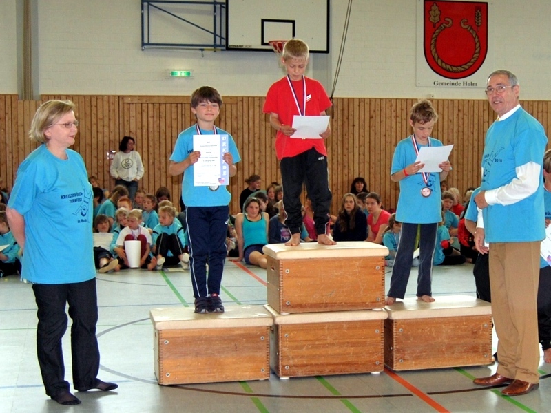 Kreisschülerturnfest 2010Im Juni 2010 fand in Holm das diesjährige dreitägige Kreisschülerturnfest statt. Mehr als 300 junge Sportler der Jahrgänge 1990-2006 fanden sich am Sonntag in der Holmer Sporthalle zur Siegerehrung ein, die von der Vorsitzenden des Kreisturnverbandes, Bärbel Renner, Kreispräsident Burkhard E. Tiemann, unterstützt von der Schulleiterin der Heinrich-Eschenburg-Schule, Frau Zwack und Oberkreisturnwart Andreas Goerlich vorgenommen wurde.