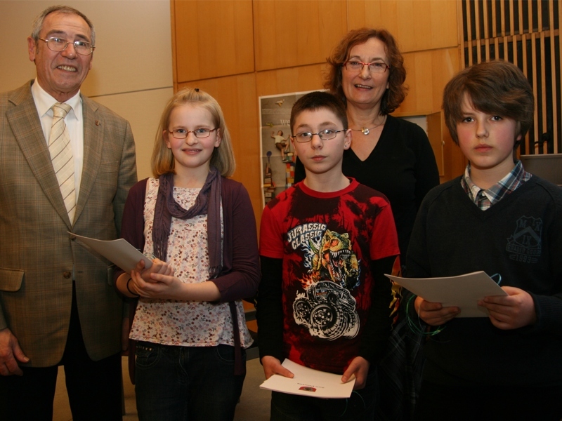 Sie erhielten bei der anschließenden Siegerehrung zusätzlich ein Buch und einen Büchergutschein. Im Prinzip seien alle Teilnehmer Sieger, so der Kreispräsident in seiner kurzen Ansprache. Denn Lesen mache nicht nur Spaß, es bilde auch und verschaffe denen, die gerne lesen, einen großen Vorsprung für das spätere Leben.