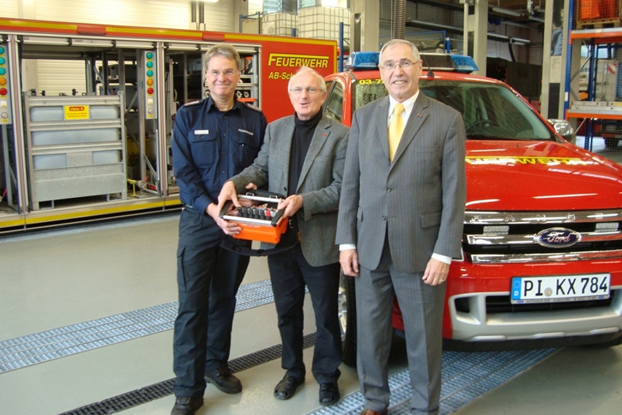 Der Kreis Pinneberg hat weiter in die Ausstattung seiner Katastrophenschutzeinheiten investiert. Am 22.10.2015 übergab Kreispräsident Burkhard E. Tiemann im Beisein des Vorsitzenden des Ausschusses für Umwelt, Sicherheit und Ordnung, Helmuth Kruse, sowie Vertretern der Kreisverwaltung ein Probensammelfahrzeug für den ABC-Dienst/Löschzug Gefahrgut sowie zwei Abrollbehälter (ein Abrollbehälter „Kran-Container“ und ein Abrollbehälter „Schaum“) an Kreiswehrführer Frank Homrich.