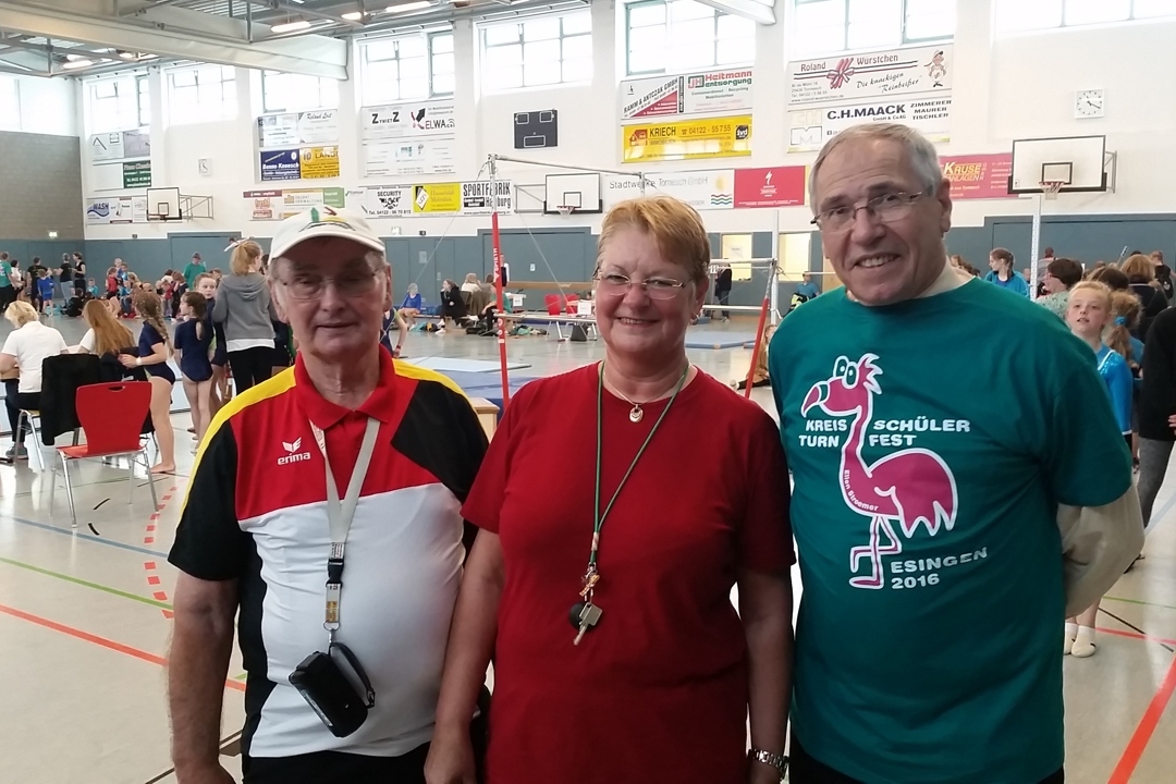 Es sei immer wieder bewundernswert, mit welch großem Engagement Bärbel Renner, Vorsitzende des Kreisturnverbandes und Ihre Mitstreiterinnen und Mitstreiter jedes Jahr dafür sorgen, dass für die Kinder dieser Altersklasse ein solches sportliches Highlight möglich wird: Das Kreisschülerturnfest, an dem in diesem Jahr wieder 170 Turnerinnen und Turner in 20 Riegen aus 11 Vereinen beteiligt waren. Mit diesen Worten eröffnete Kreispräsident Burkhard E. Tiemann am 02.07.2016 die Wettkämpfe, nicht ohne eines der schon traditionellen T-Shirts übergestreift zu haben.