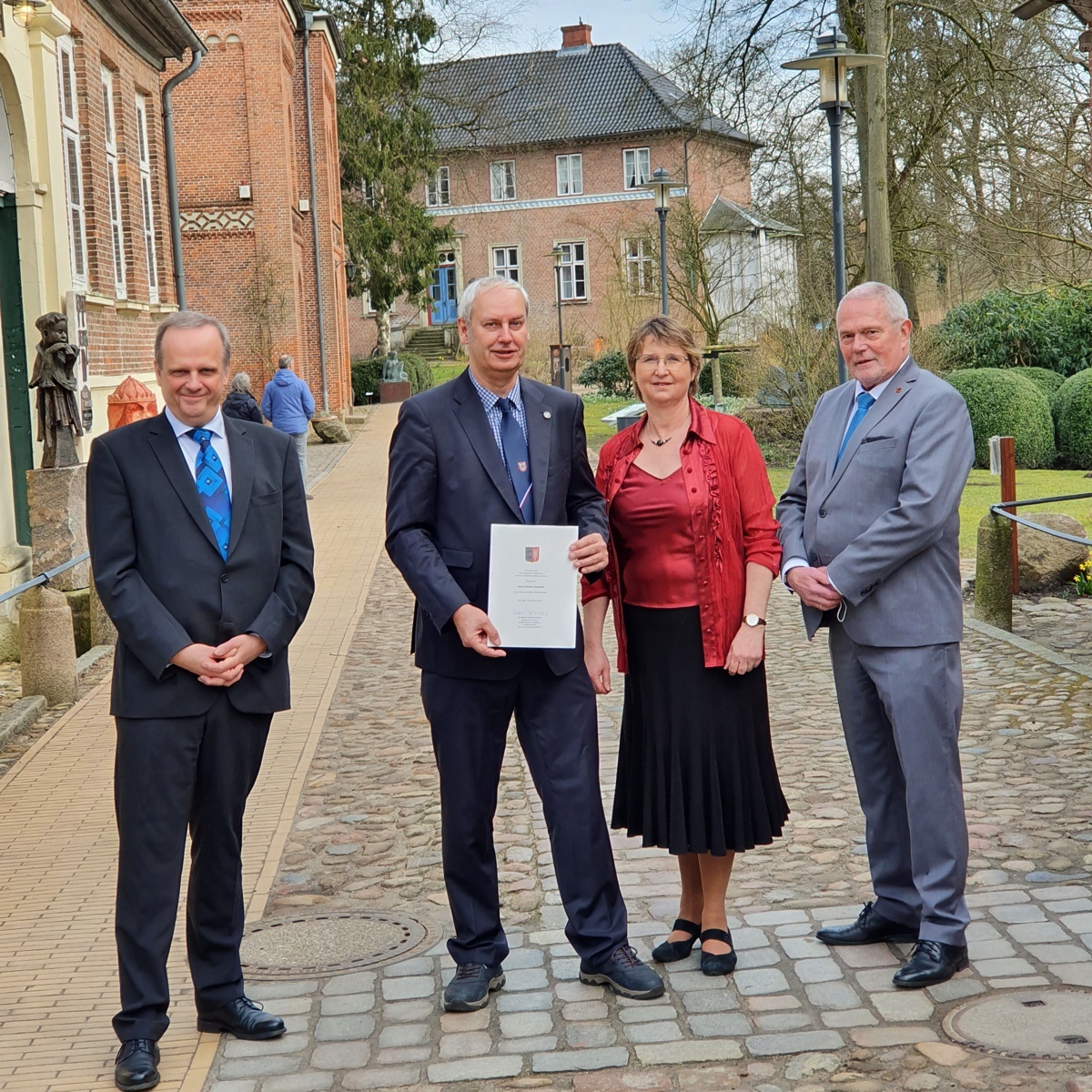 Am Mittwoch, 16.03.2022, überreichte Kreispräsident Helmuth Ahrens die Verdienstnadel an Ortwin Schmidt und ehrte seine Verdienste bei einer kleinen Feierstunde im Schlossgefängnis Barmstedt. Herr Peter Friedrich Botter lebt auf Helgoland, dadurch war die persönliche Übergabe erschwert, er bekam seine Verdienstnadel auf dem Postweg übermittelt.