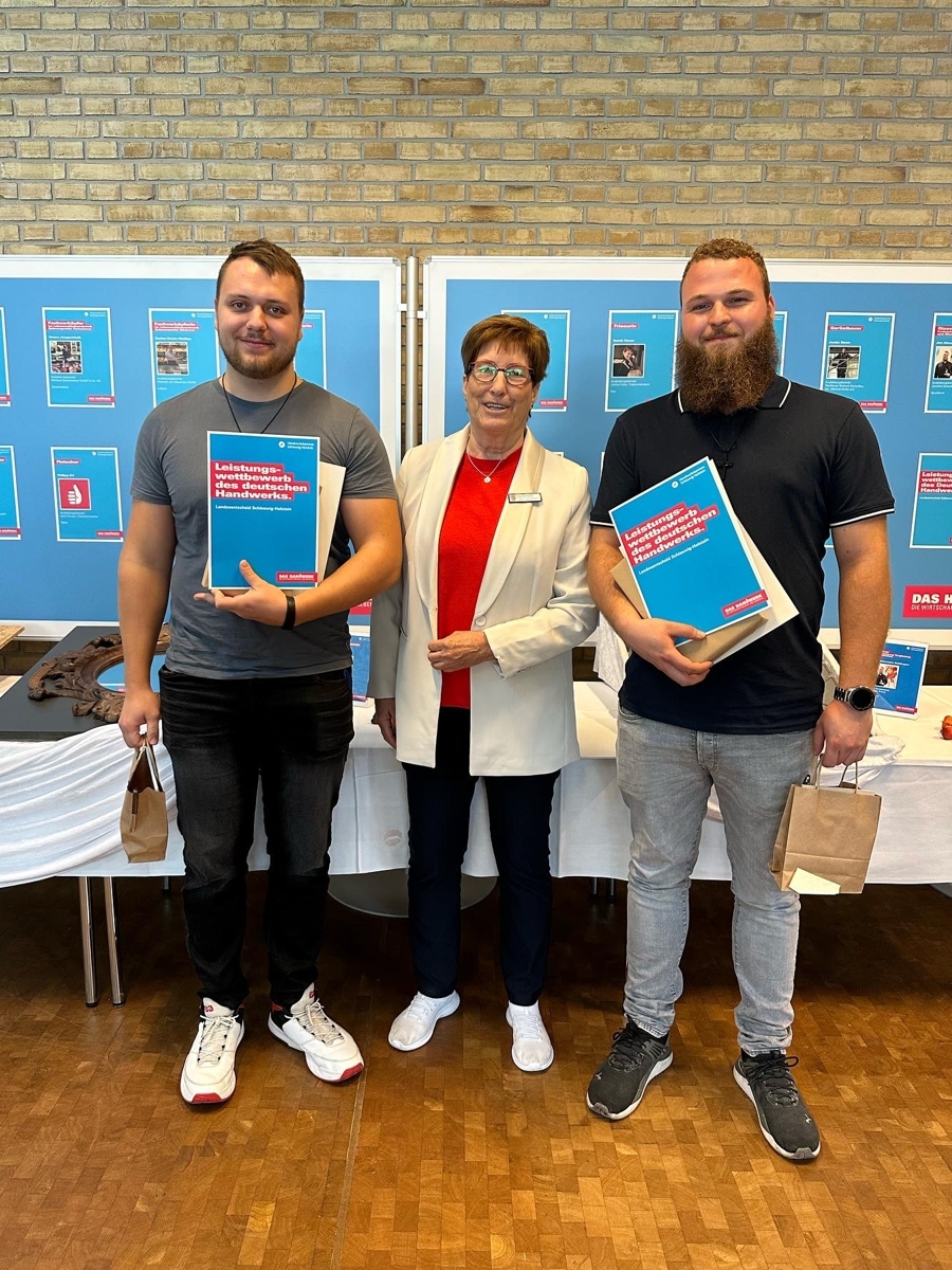 Beim Leistungswettbewerb des deutschen Handwerks durften sie sich zum Kreis der Sieger*innen zählen. Sie haben sich in diesem Jahr als Innungsbeste bei der Gesellenprüfung durchgesetzt. Insgesamt 18 Frauen und 36 Männer nahmen ihre Ehrungen in Schleswig entgegen. Vor Ort war auch die 1. Stellvertretende Kreispräsidentin Elke Schreiber, die den beiden Handwerkern aus dem Kreis Pinneberg gratulierte und ihnen Präsente des Kreises überreichte.