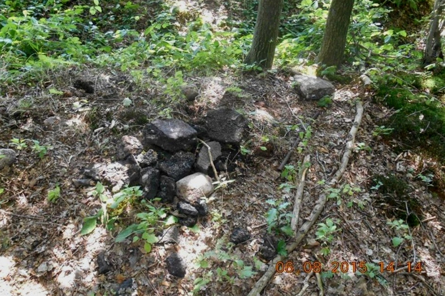 Zunächst erfolgte eine Begehung der Fläche sowie deren Randbereiche. Auf der Bodenoberfläche des Regenrückhaltraumes wurden nur sehr vereinzelt kleinere Asphaltbrocken gefunden. Anders dagegen verhielt es sich in den Randbereichen. An den Böschungskanten und im angrenzenden Waldstück waren eindeutig Asphaltbrocken zu finden. Diese sind wahrscheinlich z. T. durch Erosion aus der Böschungskante des Regenrückhaltebeckens ausgespült worden, aber wohl auch in den letzten Jahren bei der Räumung des angrenzenden Grabens mit dem Aushubmaterial an der Böschungskante abgelagert worden. Ohne Zweifel sind diese Brocken aber Abfall und müssen fachgerecht entsorgt werden.