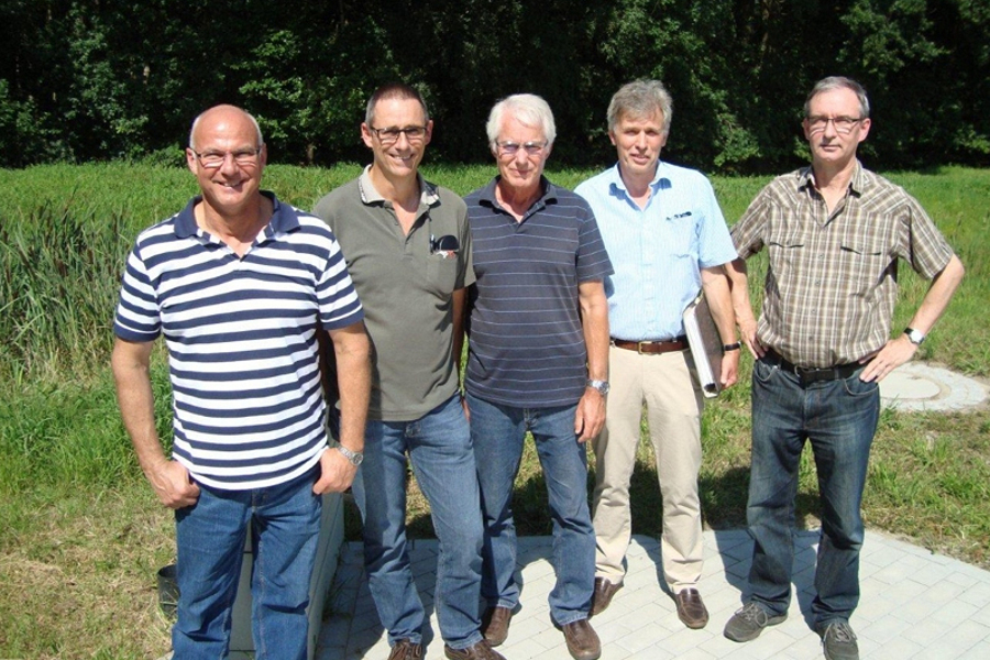 Bildinformation: (v.l.n.r.) BGM Michael Rosenthal, Uwe Sievers vom Amt Elmshorn-Land, Klaus Balzat, stellv. BGM und Vorsitzender des Bau-, Wege- und Umweltausschuss, Einar Landschoof vom Fachdienst Umwelt des Kreises, Dr. Klaus Pätzmann, Gutachter vom Ingenieurbüro Beyer