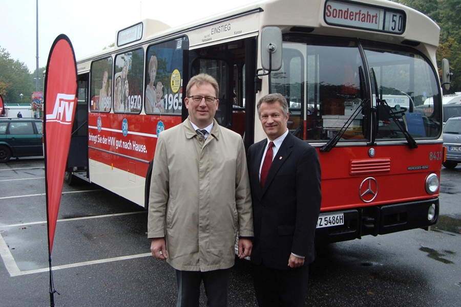 Das 50-jährige Jubiläum ist Anlass für einige besondere Aktionen. Eine davon ist die HVV-Umlandtour eines Oldtimer-Busses, der, liebevoll restauriert, heute in Elmshorn Station gemacht hat. Noch bis zum 18. Oktober ist der Bus in vielen Städten des Umlandes unterwegs.