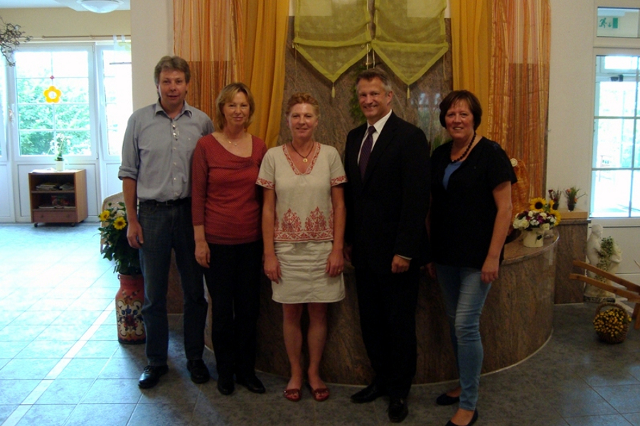 Im Rahmen seiner Sommertour 2015 hat Landrat Oliver Stolz am Dienstag, den 11. August, die Seniorenresidenz Rüpcke in Schenefeld besucht. Das Senioren- und Pflegeheim ist ein familiengeführtes Unternehmen mit rund 70 Mitarbeitern und 96 Plätzen, aufgeteilt in 92 Einzel- und 2 Doppelzimmer.