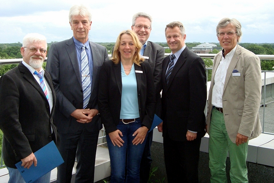 Bildinformation: Es freuen sich über die Vertragsunterzeichnung (v.l.n.r.): Siegfried-Bruno Retzke, Abteilungsleiter im Fachdienst Jugend und Bildung des Kreises Pinneberg; Detlev Brüggemann, stellv. Vorsitzender des KSV; Birgit Grelck, Fachdienstleiterin des Fachdienstes Jugend und Bildung des Kreises Pinneberg; Karsten Tiedemann, Geschäftsführer des KSV; Landrat Oliver Stolz; Sönke P. Hansen, Vorsitzender des KSV