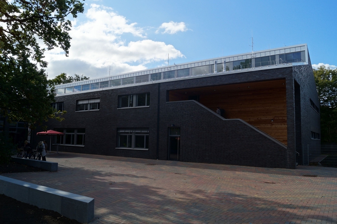 Die „alte“ Schule ist seit kurzem in Teilen „brandneu“: Die Planungen für das neue Werkstattgebäude begannen im Juni 2013, die Grundsteinlegung erfolgte am 5. Mai letzten Jahres. Der ca. 9,5 Mio. € teure Bau wurde im September fertiggestellt und dem Schulbetrieb übergeben. Auf 4.600 qm Bruttogeschoßfläche können nun ca. 660 Auszubildende und Schülerinnen und Schüler in modernen, lichtdurchfluteten Räumen zeitgemäß unterrichtet werden.