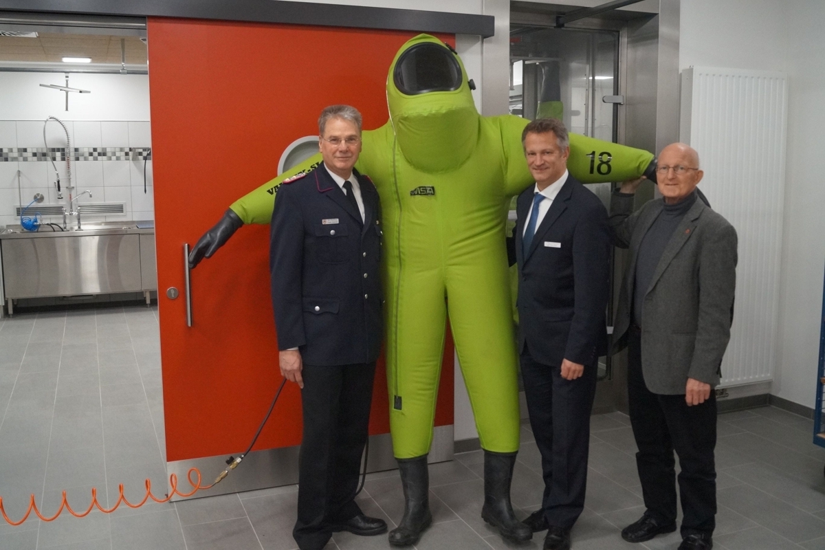 Kreiswehrführer Frank Homrich hieß alle Gäste herzlich willkommen und war voll des Lobes über das neue Gebäude: „Die jetzige Unterbringung ist modern eingerichtet, verfügt über eine aktuelle Kommunikationseinrichtung und einen großen Schulungsraum, der sowohl für den ABC-Dienst als auch für die Ausbildung der Feuerwehren genutzt werden kann“ so Homrich. Besonders freue er sich über die neue Waschstraße für die Chemikalienschutzanzüge, in diese Anzüge gereinigt, gewartet und auch kleinere Reparaturen durchgeführt werden können. Aber auch die neue Hydraulik- und Atemschutzwerkstatt sowie die neuen Reinigungsmöglichkeiten für Einsatzkleidung stellen eine große Verbesserung dar. „Wir alle freuen uns riesig und sind stolz auf dieses neue Gebäude, dass der Kreis Pinneberg seinen Feuerwehren gebaut hat“ so Homrich und bedankte sich herzlich bei allen, die bei der Planung und Durchführung mitgewirkt haben.