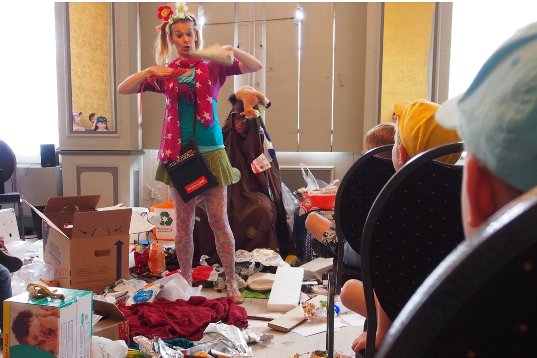 Passend fand im Anschluss an die Vorstellung der Projektziele noch eine interaktive Umwelt-Theateraufführung der Galli Theater Company statt. Rund 50 Kita-Kinder folgten gespannt, wie die zauberhafte Dorofee und der mutige Herbie den Müllvollberg retten und erlebten so, was man alles tun kann, um Abfälle zu vermeiden.