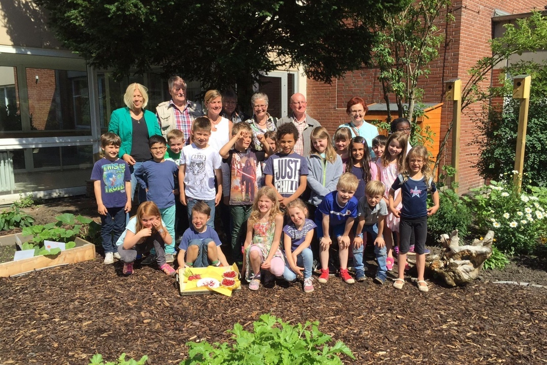 Initiatorin ist die Pädagogin Maja Schwarzbach, sichtlich stolz berichtet sie vom ersten Gartentag der am 16.06.2016 stattfand: „25 Eltern der ersten und zweiten Klassen kamen, um gemeinsam mit unserem Kollegium unsere Wünsche wahr werden zu lassen und umzusetzen. Wir haben viel geschafft und es war ein sehr erfolgreicher Tag. Nun können die Zweitklässler in ihren Klassenbeeten nach eigenen Wünschen gärtnern, sich der Natur nähern und sich auf die Suche nach kleinen Tieren begeben.“