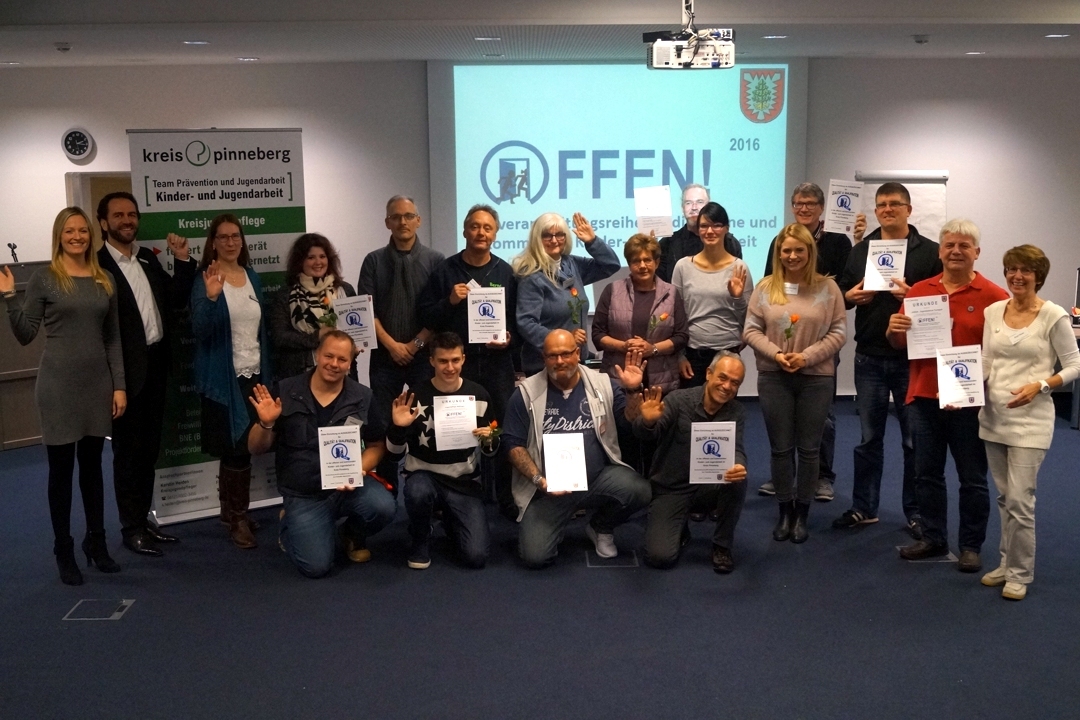In vielen Einrichtungen der kommunalen offenen Kinder- und Jugendarbeit wird fachlich ausgezeichnete Sozialarbeit betrieben und werden sehr niedrigschwellige Zugänge für Kinder und Jugendliche ermöglicht. An die Kreisjugendpflege Pinneberg wurde bereits in der Vergangenheit von Mitarbeitern/innen aus den Einrichtungen der Wunsch herangetragen, speziell auf die Bedürfnisse der offenen Kinder- und Jugendarbeit zugeschnittene, qualitativ hochwertige Fachveranstaltungen zu ermöglichen. Gerade in diesem speziellen und anspruchsvollen Arbeitsfeld der offenen Arbeit mit Kindern und Jugendlichen waren Angebote der Fortbildung wichtig und bisher eher selten zu finden. Aus diesem Wunsch heraus entstand die Fortbildungsreihe OFFEN, die durch das Team Prävention und Jugendarbeit des Kreises Pinneberg sowie weiteren Partnern erstmalig in 2015 und nun im zweiten Jahr durchgeführt wurde.