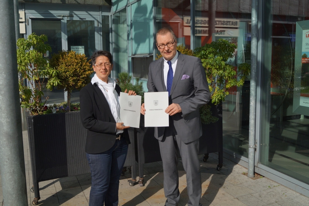 Die Geschäftsführerin der Paritätischen Pflege S.-H. gGmbh, Irini Aliwanoglou und der Beauftragte für Menschen mit Behinderungen des Kreises Pinneberg, Axel Vogt, freuen sich über die Beitrittserklärung