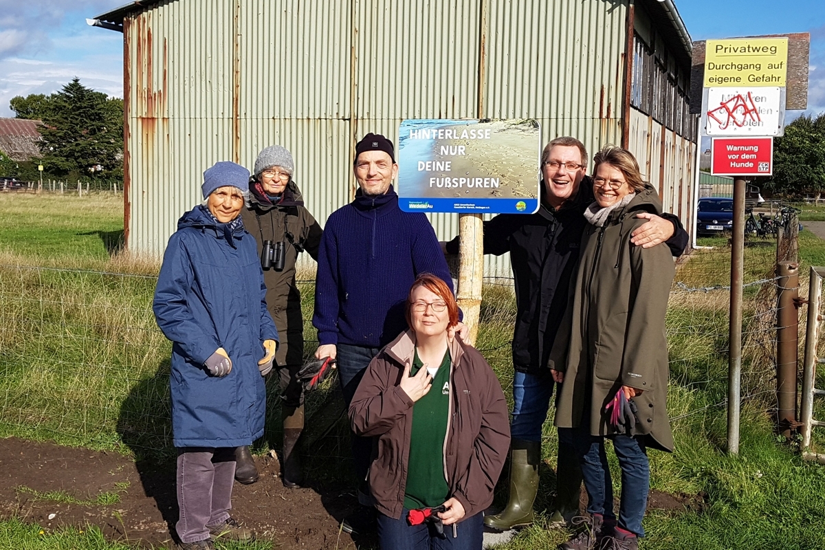 Zum Abschluss des Projektes wurden nun am Hetlinger Strand fünf neue Infotafeln aufgestellt, die an das Umweltbewusstsein der Gäste appellieren, am Strand nichts außer den eigenen Fußspuren zurück zu lassen.