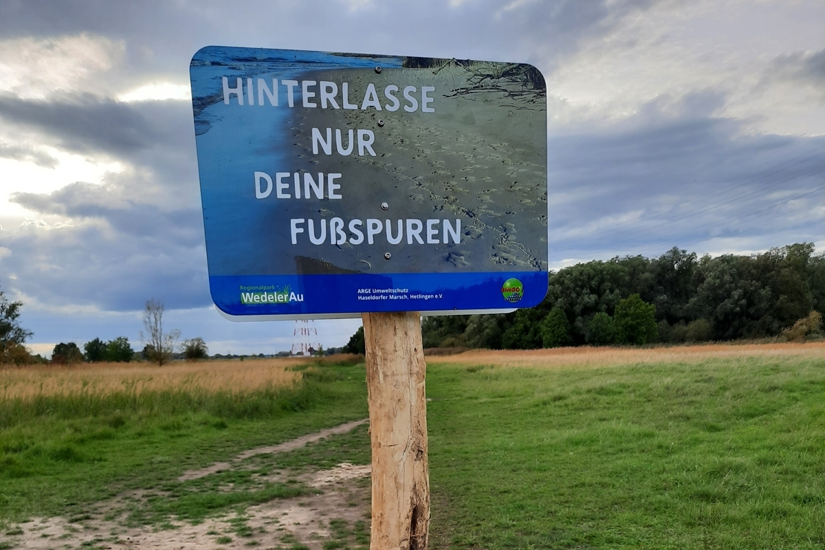 Viele Gäste hinterlassen am Hetlinger Strand mehr als nur Fußspuren. Neue Informationsschilder sollen jetzt Gäste sensibilisieren, den Elbstrand sauber zu halten. Die fünf Schilder mit der Aufschrift „Hinterlasse nur Deine Fußspuren“ sind Teil eines Projektes zur Müllvermeidung, das von der „Bingo! Umweltlotterie gefördert wurde und u.a. vom Regionalpark Wedeler Au e.V. umgesetzt wurde.