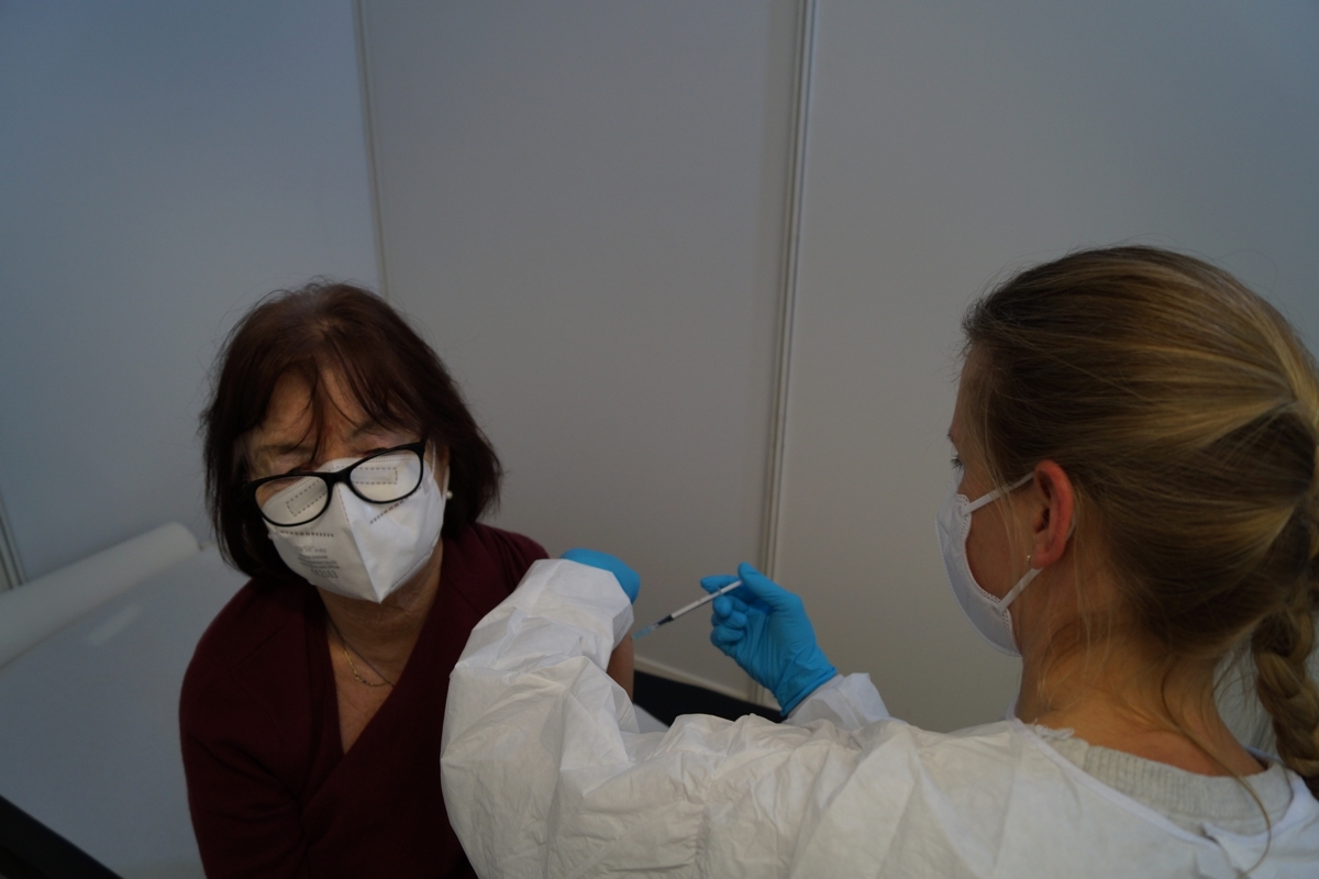 Irmgard Sieber und Barbara Fuhlbrügge erhielten die ersten Impfungen im Kreis Pinneberger Impfzentrum in Prisdorf. Am Montag, 4. Januar 2021 um 13:00 Uhr starteten die Impfungen für die erste Gruppe.