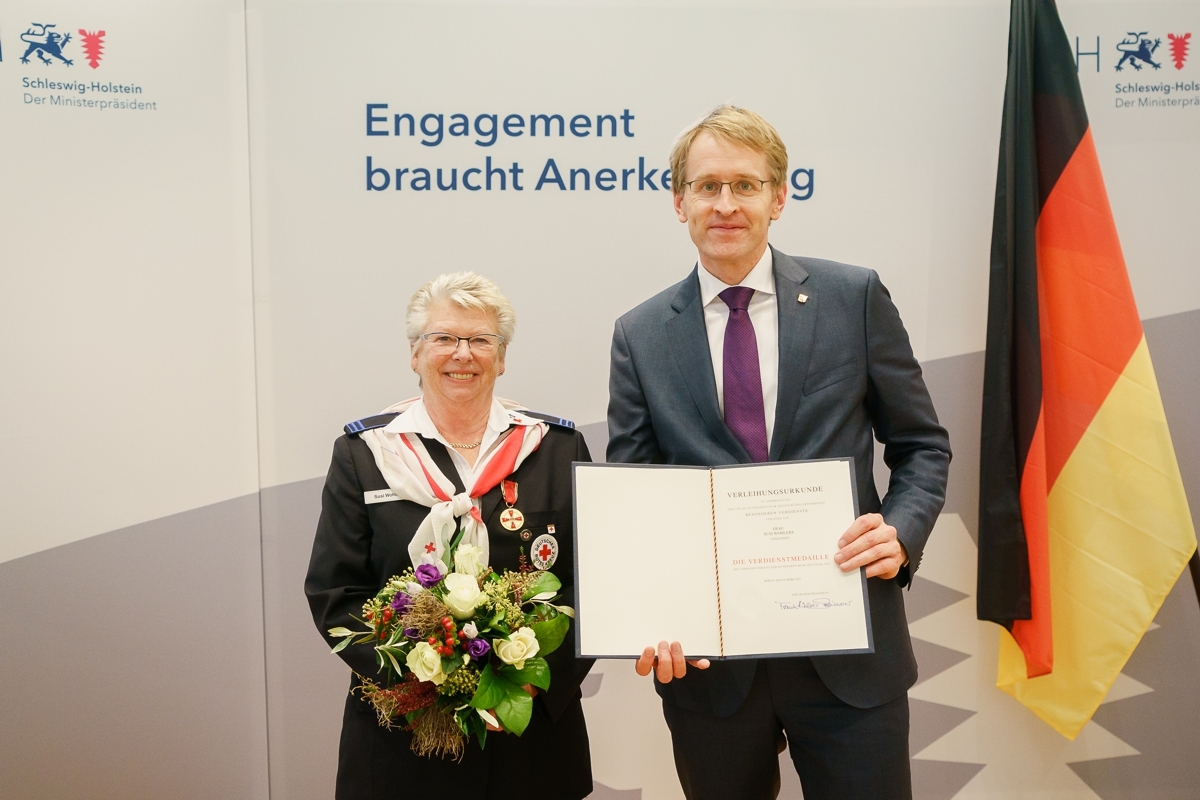 Am Dienstag, 26.10.2021, überreichte Ministerpräsident Daniel Günther in Kiel an die engagierte Schleswig-Holsteinerin Edeltraud "Susi" Wohlers das Verdienstkreuz der Bundesrepublik Deutschland.