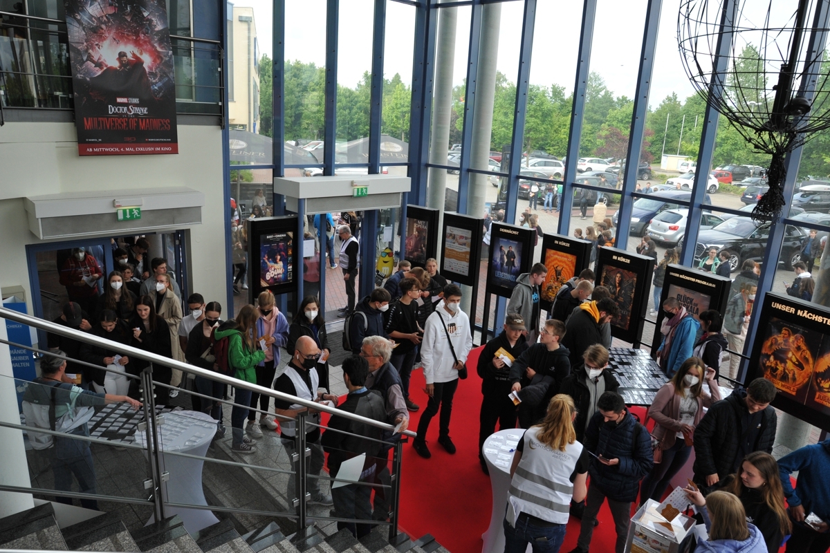 Im Cineplex-Kino begrüßte das Orga- und Helfer-Team die Teilnehmenden, gaben die Namensschilder aus und ordneten sie ihren entsprechenden Bus- und Fußgängergruppen zu.