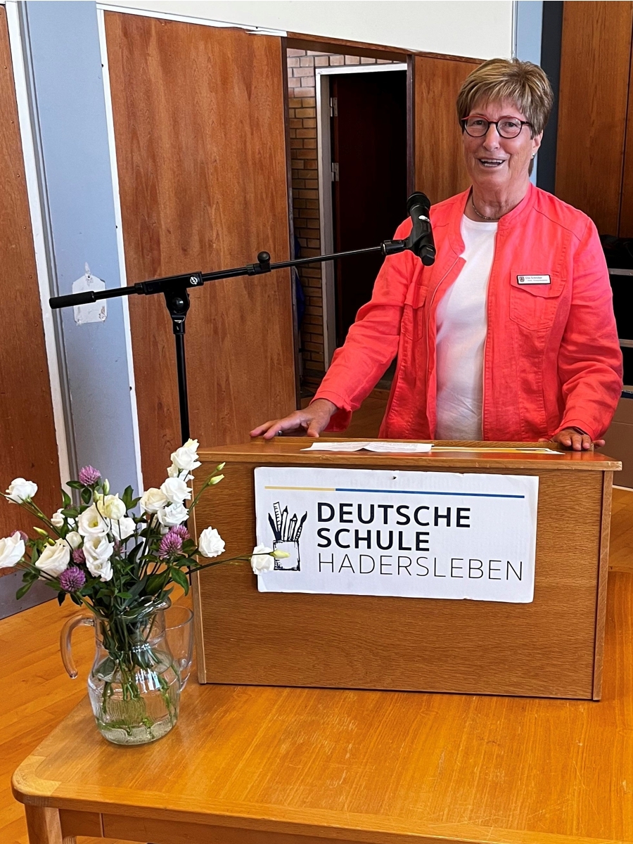 Den Schwung nahm dann erst einmal die Corona-Pandemie. Feiern wurden abgesagt oder nur in kleiner Runde begangen. Bei der diesjährigen Abschlussfeier in Hadersleben knüpfte Schreiber mit einem erneuten Besuch an ihre Ankündigung an. „Diese Patenschaft lebt“, sagt Schreiber. „Das habe ich besonders gemerkt, als sich alle am Ende mit den Worten ‚Tschüß, liebe Patentante‘ von mir verabschiedet haben.“